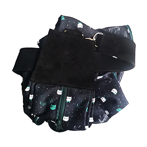 La tira es fija y bien ancha para que no te lastime el hombro y es desmontable para que puedas reemplazarla por dos correas regulables y llevarla como mochila.